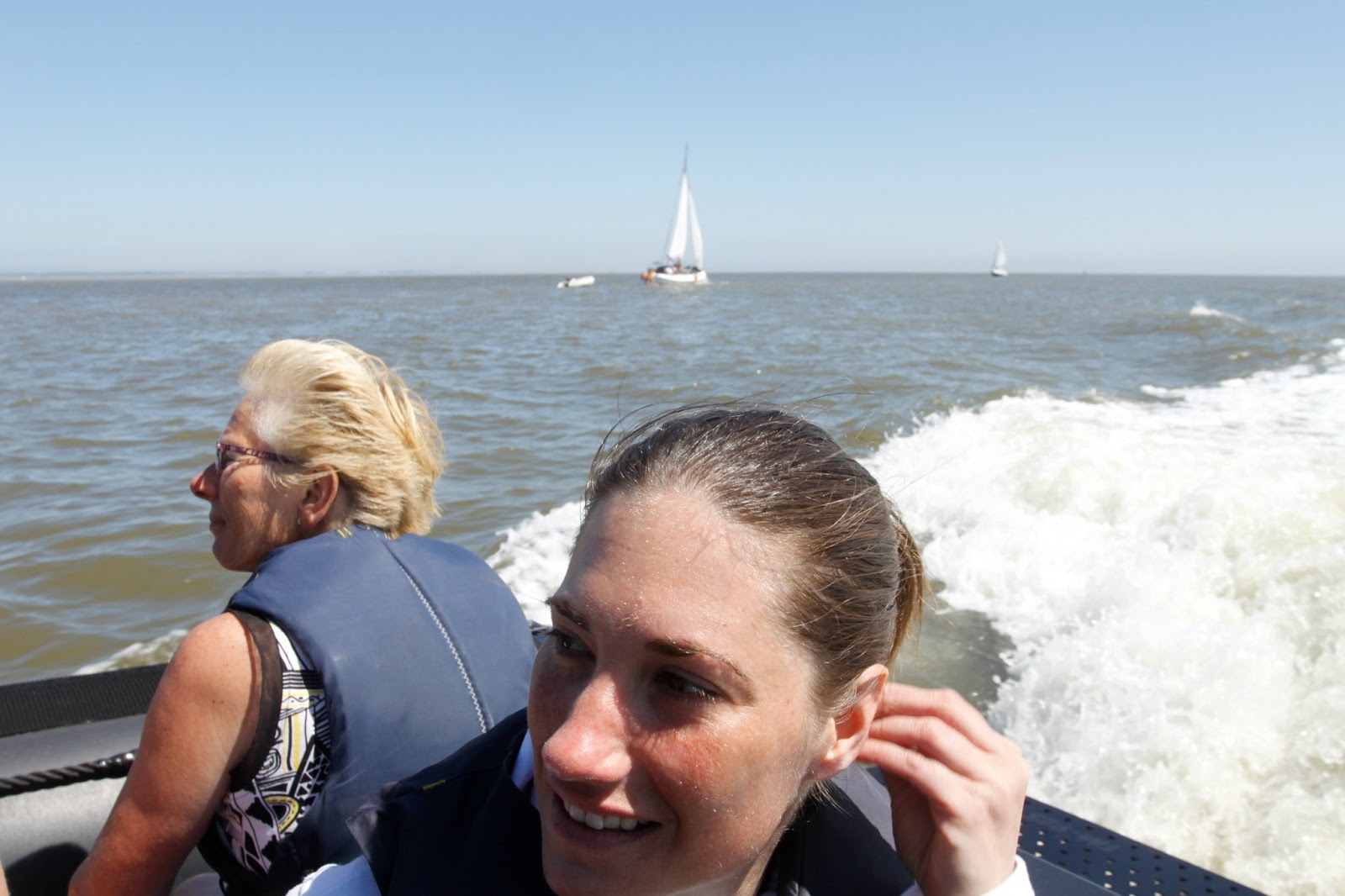 Onvoorstelbaar wat een power waarmee mijn 11 medepassagiers en ik over de Waddenzee stoven op weg, via de Engelsmanplaat (tussen de eilanden door), naar de Noordzee.